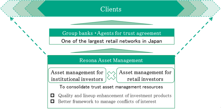 To such ends, we will consolidate asset management resources into Resona Asset Manegement with the aim of strengthening the asset-management capability. The Group also intends to establish a system to provide retail clients with high-quality asset management services, previously offered for institutional investors.