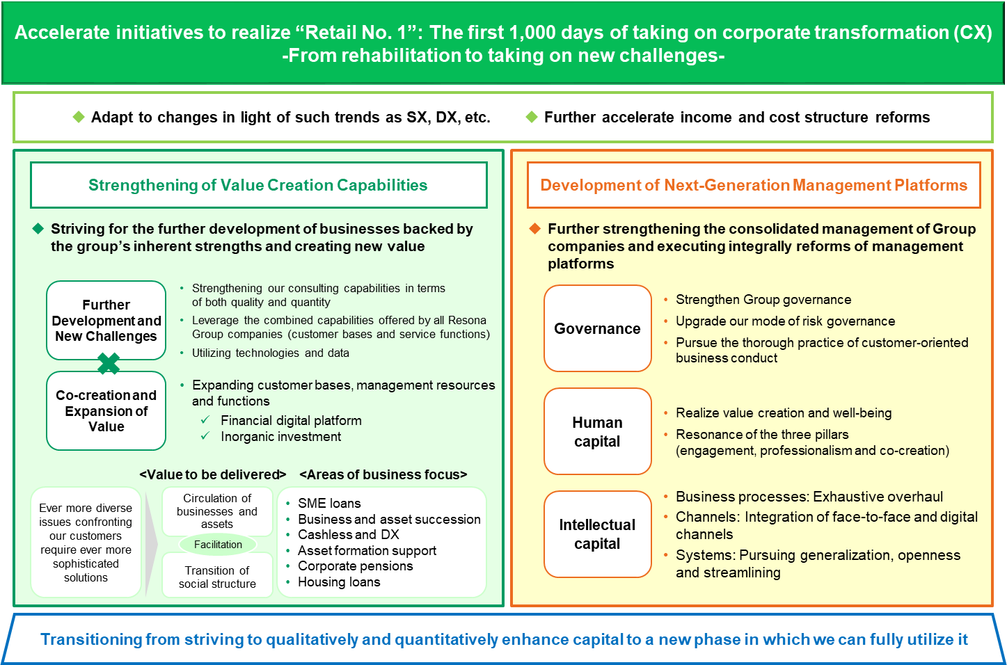 - The Group marks 20 years since the launch of Resona's reforms. We ensure that our DNA " the challenge of reform" are passed down to the next generation, while accelerating initiatives to realize "Retail No. 1" .