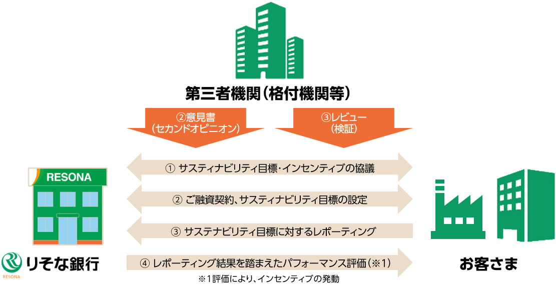 SLLとは、環境・社会・経済に対するお客さまの事業活動による影響を考慮した「サステナビリティ戦略」と整合した目標(サステナビリティ・パフォーマンス・ターゲット 以下「SPT」)を定め、達成状況に応じて金利等の融資条件が連動する借入手法です。