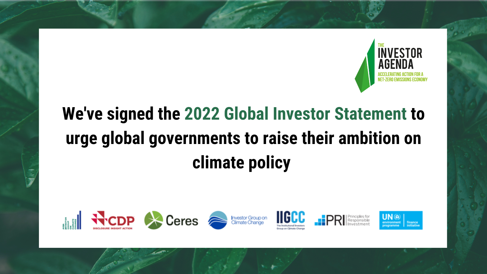Investor Agenda発行の「2022年投資家声明」への賛同表明について