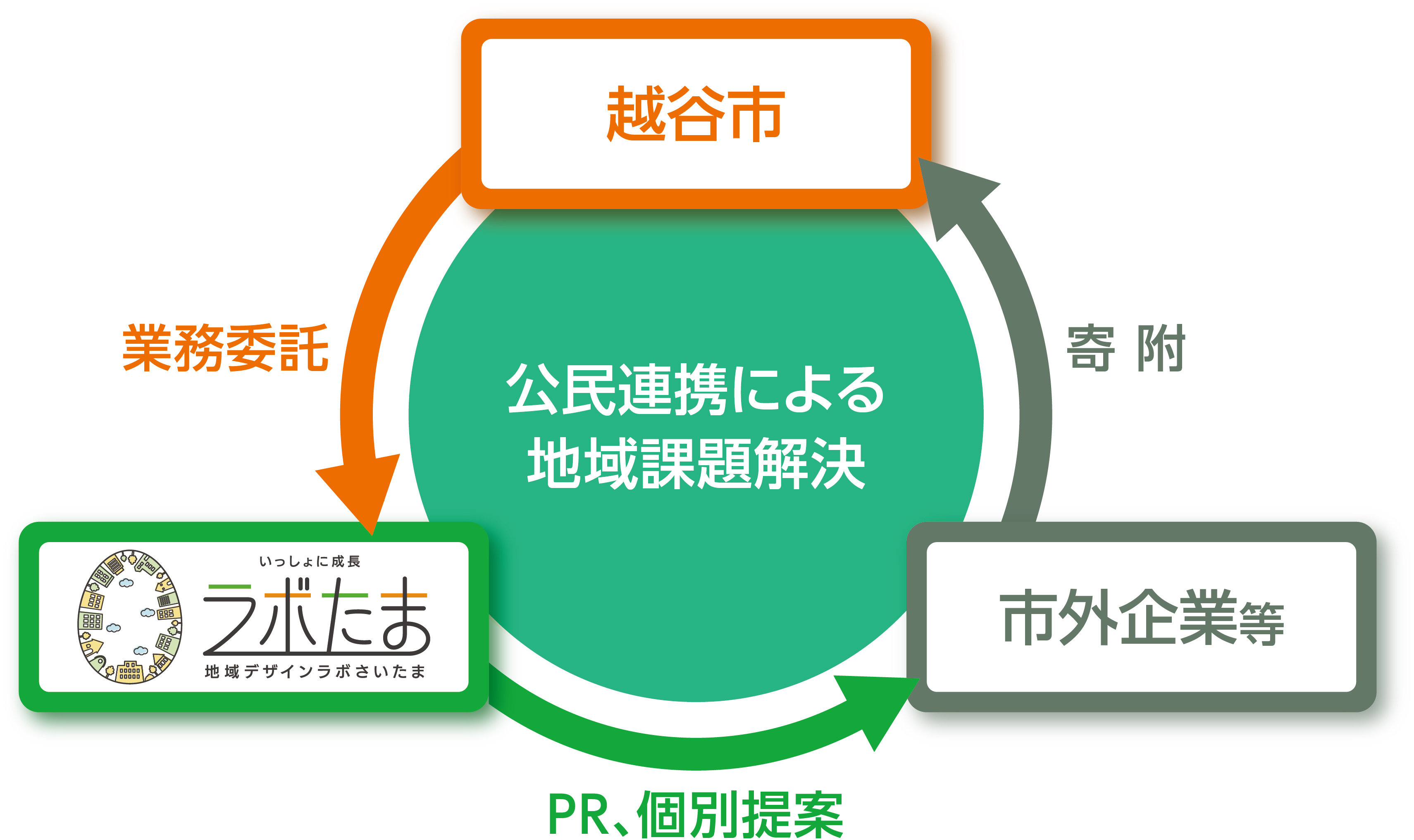 - ※2ラボたまは、2022年4月に越谷市から「企業版ふるさと納税PR等支援業務」を受託し、寄附見込企業の開拓や寄附実現に向けた地域課題解決事業の企画立案等のサポートをしています。