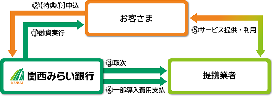特典① 「リスキリング」・「福利厚生」・「健康経営」に関する附帯サービスの中から1つを選択いただき、当該サービスを通常よりも優遇された条件でご利用可能(当社側で一部費用を負担) 特典② 「賃上げ促進税制※」の適用を受けた場合、本ファンドの適用金利を1年間0.1%引き下げ |