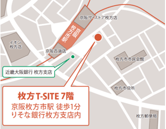 所在 | 大阪府枚方市岡東町12番2号(枚方T-SITE 7階・りそな銀行枚方支店内・枚方ローンプラザ併設) |