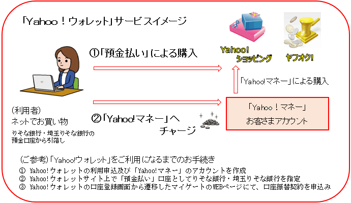 りそなグループのりそな銀行(社長 東 和浩)と埼玉りそな銀行(社長 池田 一義)は、本日より、法人向け決済サービスである「リアルタイム口座振替サービス」をヤフー株式会社(代表取締役社長 宮坂 学)へ提供いたします。これにより、同社が提供するサービス「Yahoo!ウォレット」の各決済手段における引落し口座として、りそな銀行または埼玉りそな銀行の預金口座をご利用いただくことが可能になります。