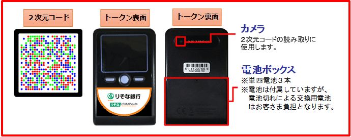 トランザクション認証には、操作性・安全性を考慮し、付属カメラにより取引内容を読み取るタイプのトークンを使用します(イメージはりそな銀行のものです)。