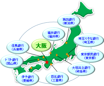 埼玉りそな銀行、伊予銀行、福井銀行、第四銀行、百五銀行、東京都民銀行、トマト銀行、但馬銀行、大垣共立銀行 |