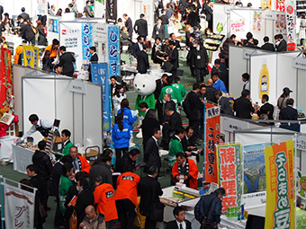 農業生産者・食品加工業等によるブース展示122ブース 展示ブースとは別に招聘した食品担当バイヤーとの予約商談も実施 |