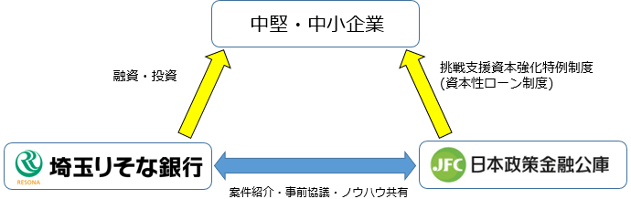 日本政策金融公庫と資本性ローン制度の利用に関する事前協議体制を新たに整えます。当社と日本政策金融公庫との間で情報交換が可能になり、民間金融機関と公的金融機関のノウハウを持ち寄った協調投融資など、お客さまに最適な資金調達方法を提案します。