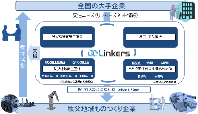埼玉りそな銀行(社長 池田 一義)は、秩父機械電気工業会(会長 強谷 隆彦)、秩父地域商工団体※1、リンカーズ株式会社※2(代表取締役CEO 前田 佳宏)、ちちぶ定住自立圏構成自治体※3と「秩父地域ものつくり企業のビジネスマッチング支援に関する協力協定」を8月1日(火)に締結いたします。