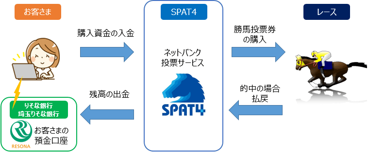 りそなグループのりそな銀行(社長 東 和浩)、埼玉りそな銀行(社長 池田 一義)は、地方競馬インターネット投票サービス「SPAT4」※1を利用する際に、インターネット上でいつでも即時に資金を振替えることができるサービス※2の提供を10月16日(月)より開始いたします。