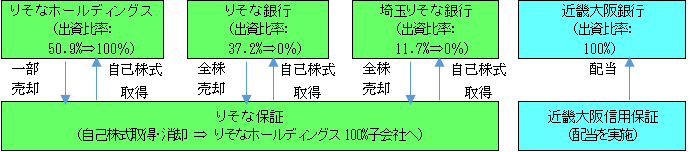 当社が保有する株式の一部ならびに株式会社りそな銀行(以下、「りそな銀行」)、株式会社埼玉りそな銀行(以下、「埼玉りそな銀行」)が保有する株式の全部を、りそな保証が取得いたしました。なお、本株式については今年度内に消却する予定です。 - (2)近畿大阪信用保証から株式会社近畿大阪銀行(以下、「近畿大阪銀行」)に対する配当を実施いたしました。