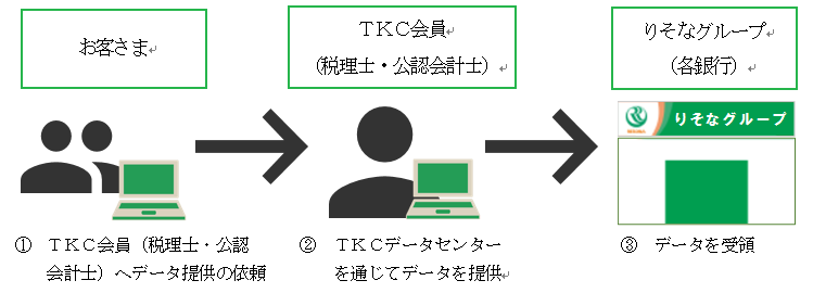 TKCの財務会計ソフトを利用しているお客さまは、決算書や月次試算表等を電子データで各銀行へ提供することが可能になり、業務の効率化が図れます。
