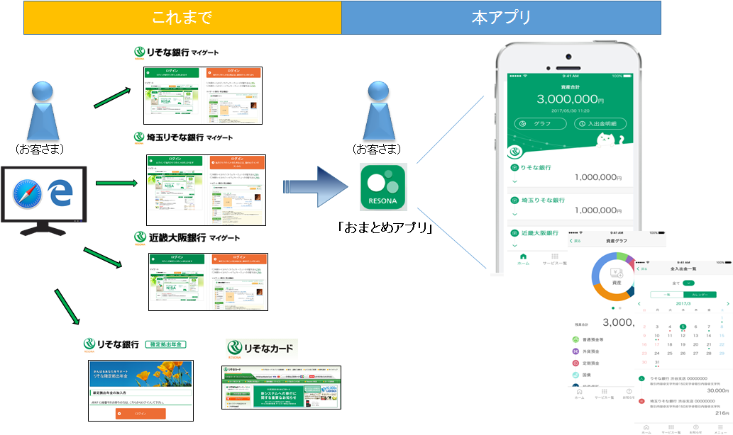 りそなグループでのお取引がアプリ1つで管理できるようになります!