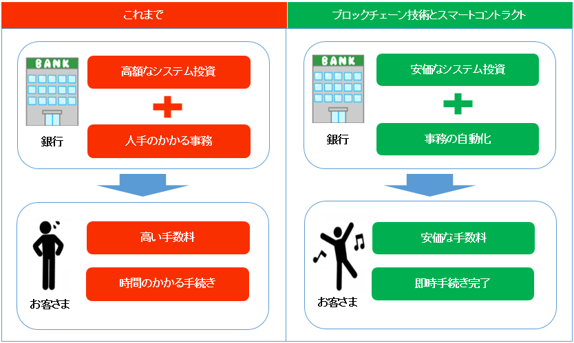 従来の個人向けローン業務のオペレーション(契約内容の確認や取引の執行、途上管理など)には人の手が多く介在しましたが、本実験の実用化により各オペレーションの自動化とこれに伴うコスト削減、手続きの自動執行による業務効率の大幅な向上を目指します。