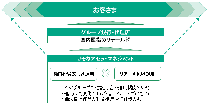 - (1)主に機関投資家向けの運用を担うりそな銀行のアセットマネジメント部の資産運用業務を分離し、リテール向けの運用を担うりそなアセットマネジメントに移管することで、りそなグループの信託財産の運用機能を集約します。