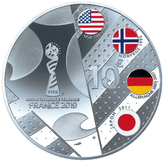 FIFA女子ワールドカップは今大会で8回目を迎え、2011年ドイツ大会で優勝したなでしこジャパンが2大会ぶりの優勝を目指して出場する注目の大会です。コインの表面には公式エンブレムと歴代優勝国の丸旗と優勝年が、裏面には躍動する選手の姿が刻印されており、コインに触れるたびにワールドカップの激闘の感動と記憶が蘇るデザインとなっています。