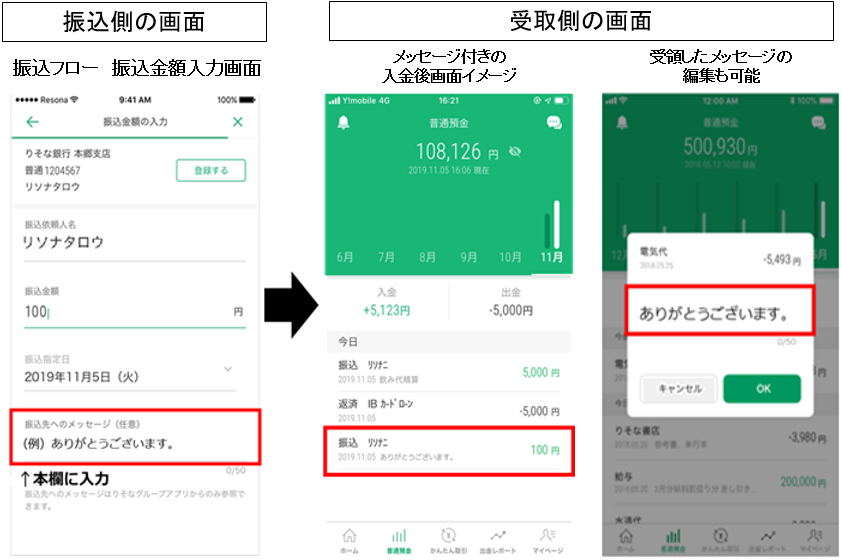 りそなグループアプリの「メッセージ付振込機能」の追加について