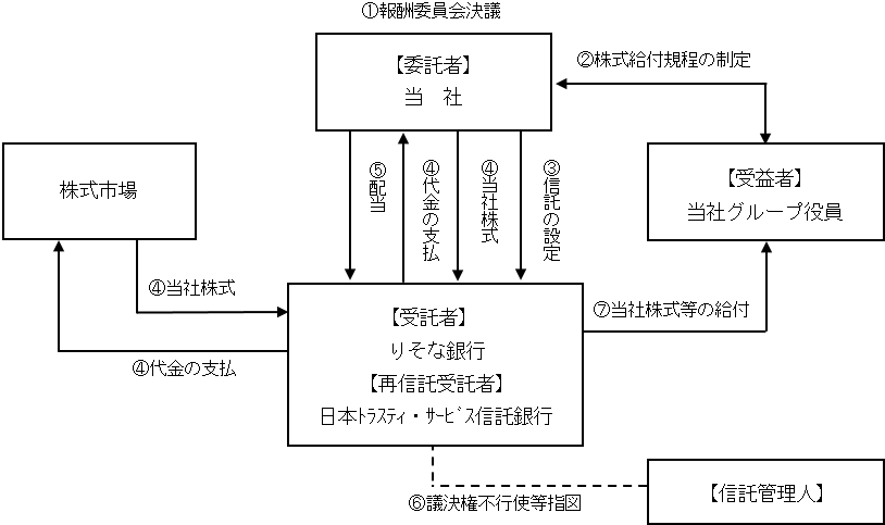 - (4)本信託は、上記(3)で信託された金銭を原資として当社株式を当社(自己株式の処分)または株式市場から取得します。