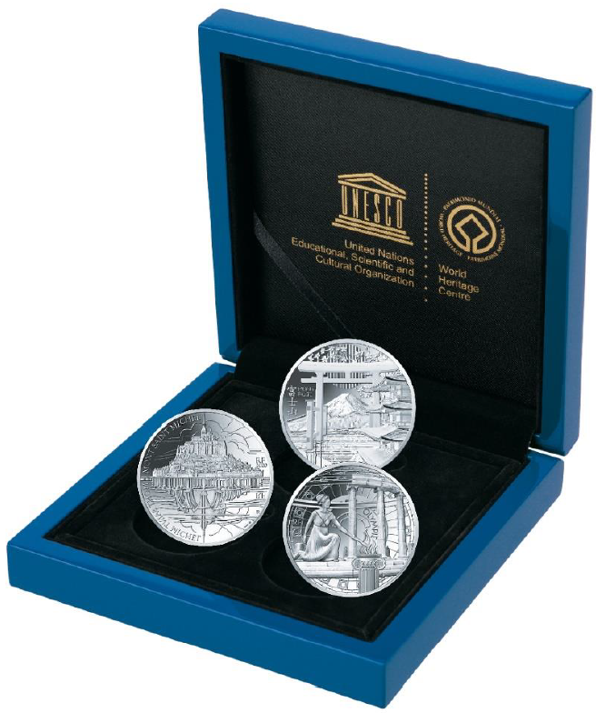今年でユネスコ(国際連合教育科学文化機関、UNESCO)が75周年を迎えることを記念して、世界を代表する世界遺産「富士山(日本)」「モン・サン=ミシェル(フランス)」「オリンピア(ギリシャ)」をデザインした記念コインが発行されます。記念コインの売上の一部は、ユネスコを通じて、世界遺産の保護・保存および修復活動に役立てられます。