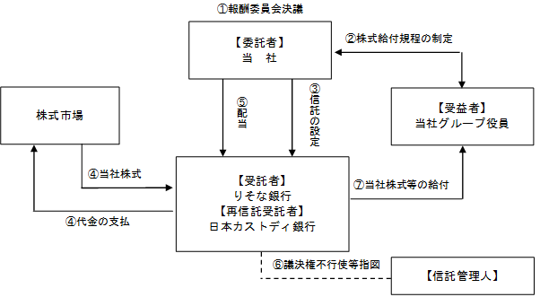 - (1)当社は、報酬委員会において、本制度の導入に係る承認決議を得ます。また、グループ銀行は、各グループ銀行の株主総会において、本制度の導入に係る承認決議を得ます。