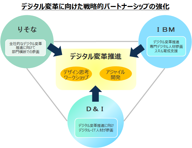 - ※1D&Iは、日本IBMとりそなHDの合弁会社で、システムの開発・運用から保守まで一貫したITソリューションをりそなHD中心に提供しています。