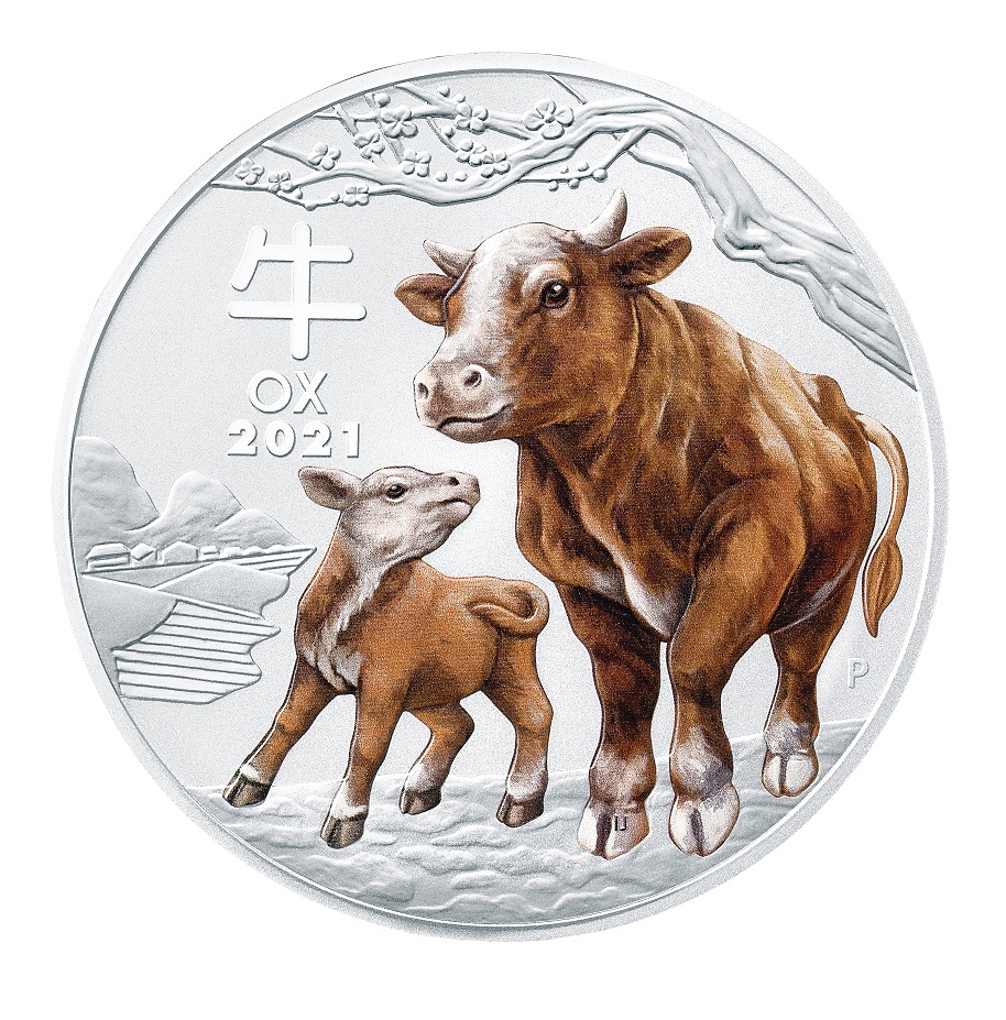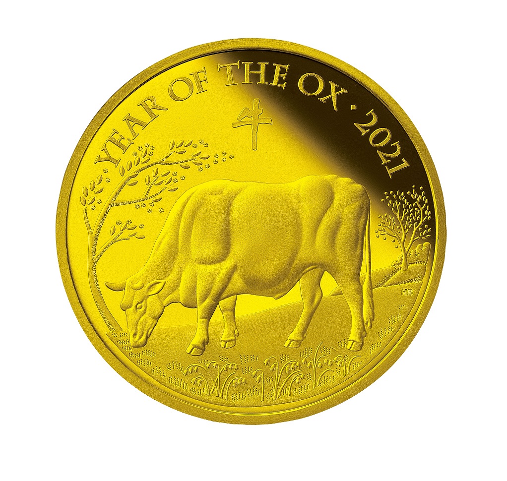 「吉事の芽生え」を表す牛のデザインで発行される記念コイン