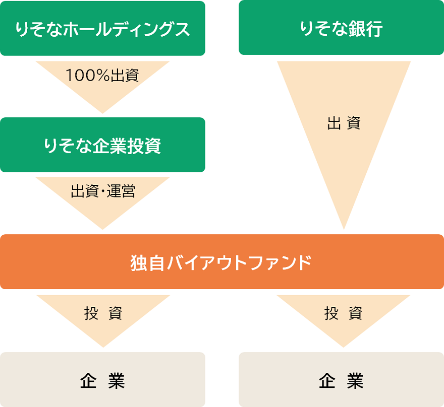 りそなグループはこれまでも一部出資などを通じて事業承継を支援するファンドを取扱ってきましたが、RCIが運営するファンドは原則議決権の過半数を取得し、更に経営人材を派遣するなどのハンズオン※による企業価値向上を目指します。経営体制強化や財務改善などを企業の内側から行ったうえで、最適な次なる株主へバトンをつなぐことにより、中堅・中小企業の持続的な事業発展に貢献していきます。