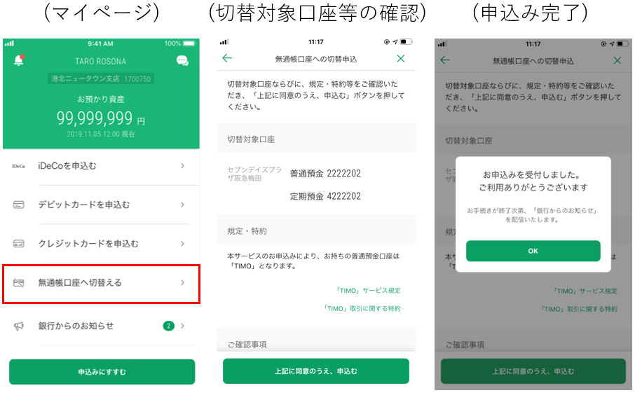 アプリで簡単に無通帳口座へ切り替えることができます