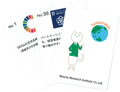 りそなグループのりそな総合研究所(社長 氷坂 智晶)は、中堅・中小企業のSDGs達成に向けた基本的知識の社内浸透を図ることを目的に、本日よりSDGsコンサルティングのメニューにカードゲーム型SDGsコンサルティングサービス(名称:シャッフル)を追加します。