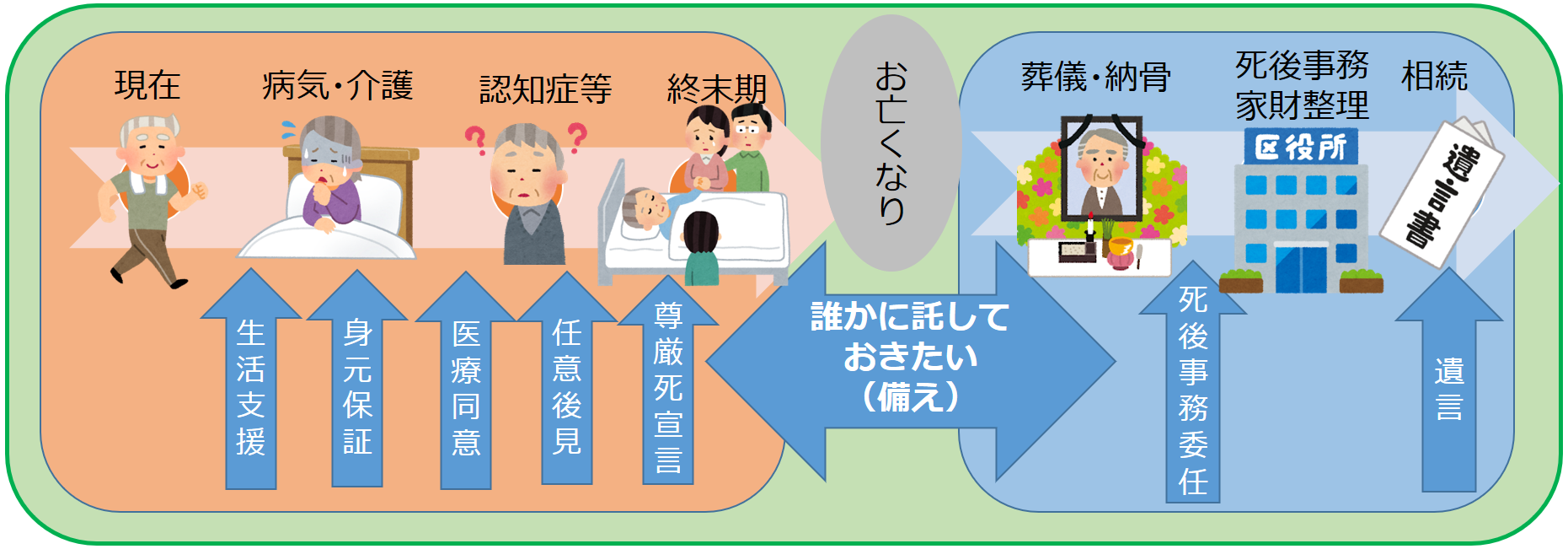 相続・資産承継サービスの提供や身元保証団体との連携を通じて、「こまりごと」解決をサポートします