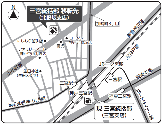 移転後の所在地 | 〒650-0004 神戸市中央区中山手通1-24-4(北野坂支店内)![]() |