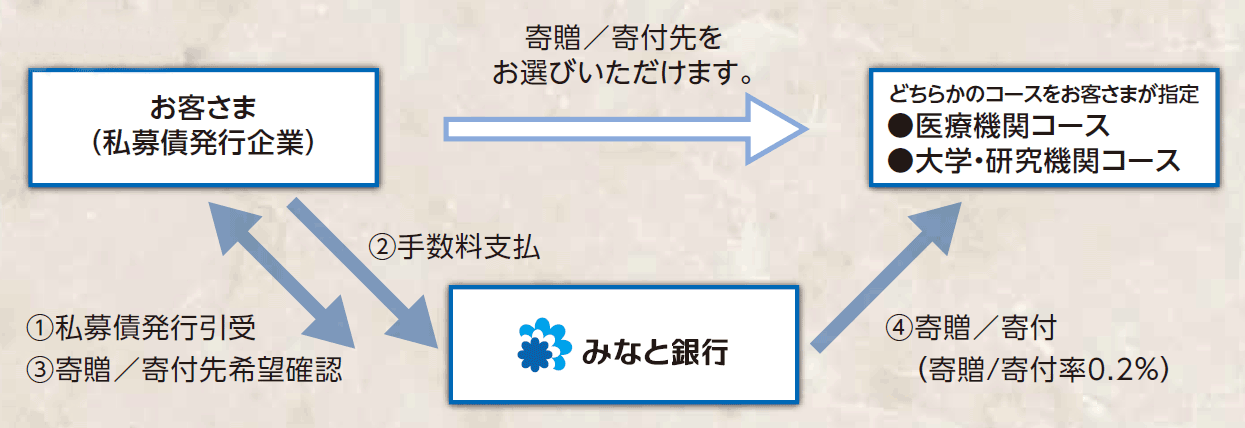 本商品は、私募債を発行する際にお客さまから当社が受け取る手数料の一部を、お客さまが指定する医療機関等に対して寄付・寄贈を行います。取扱開始から2021年8月末迄の1年2ヶ月間で80件約84億円の引受実績に達し、コロナ禍の状況下において発行企業様の想いを医療現場に届けることが出来ました。