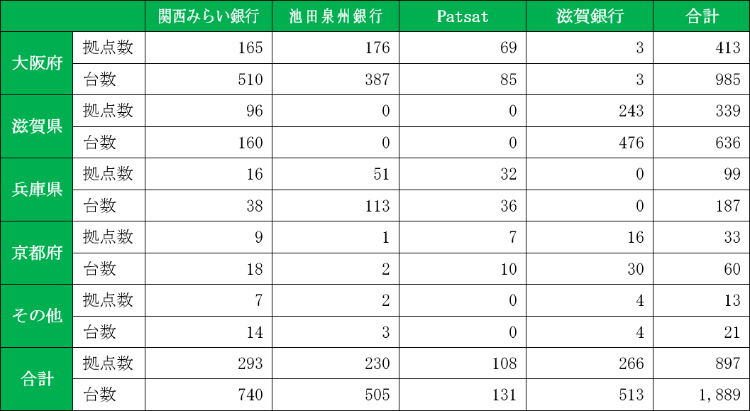関西みらい銀行、池田泉州銀行、滋賀銀行の店内外ATMおよび「Patsat」