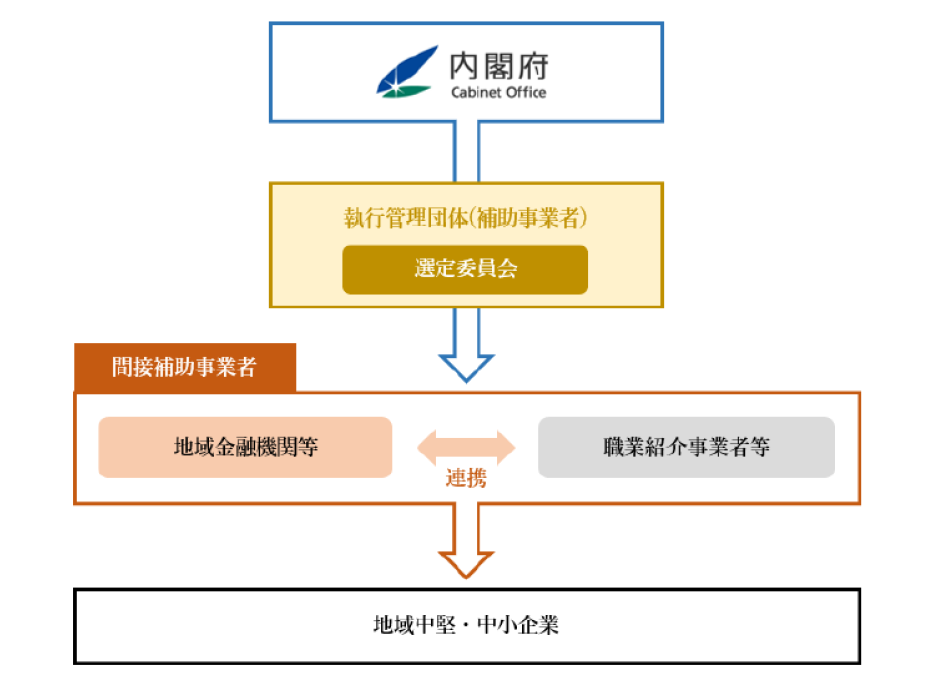 日常的に地域の中堅・中小企業と関わり、その経営課題を把握している地域金融機関等がお客さまの人材ニーズを調査・分析し、職業紹介事業者等と連携するなどしてハイレベルな経営人材、兼業・副業人材のマッチングを行う取り組みに対して支援を行うもので、地域の中堅・中小企業の成長・生産性向上の実現を目指しています。