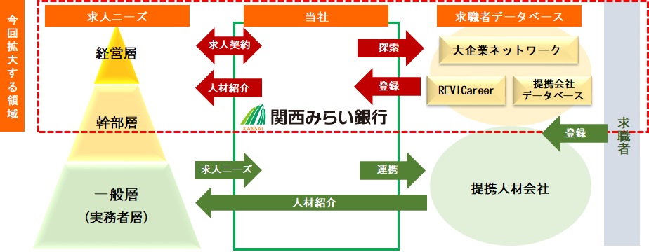 関西みらい銀行は、地域企業の経営幹部や経営課題解決に必要な専門人材の採用に貢献することを通じて、持続可能な地域経済の発展と中小企業の成長・生産性向上の実現を目指してまいります。