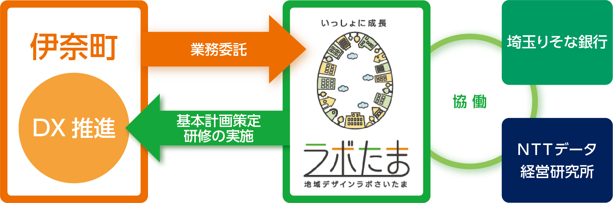 りそなグループの地域デザインラボさいたま(社長 青木 大介、以下「ラボたま」)は、9月1日(木)に伊奈町より受託した「伊奈町DX推進基本計画策定業務」において、本日、埼玉りそな銀行(社長 福岡 聡)およびNTTデータ経営研究所(社長 山口 重樹)と伊奈町のDX推進に向けた業務委託契約を締結しました。