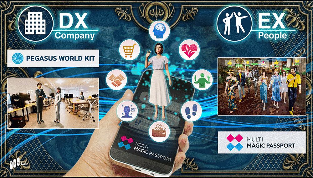 MMPは、ユーザーが「リュウグウコク(仮)」内のメタバースサービスを自由に行き来するための決済機能付き身分証明証です。MMPには、ID認証・決済手段のほか、NFT・アイテム類・アバタースキン・アバター記憶など、ユーザーが仮想世界で過ごすために有益な情報を登録することができます。これらの情報は、現実世界の利便性向上にも活用されます。