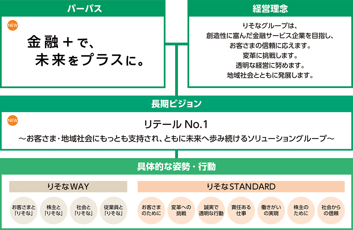 - りそな改革のスタートから20年の節目に、今日まで築き上げたりそなのDNAである「変革への挑戦」を次世代に繋ぎながら、「リテールNo.1」実現に向けて加速します。