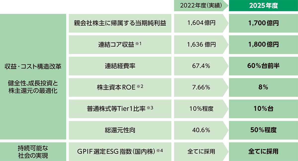 - これらの実現に向け、リテール特化の歴史の中で培ったグループの強みを活かしたビジネスの深掘と、新たな価値の創造への挑戦を通じた「価値創造力の強化」、グループ連結運営のさらなる強化と、一体的な基盤改革を通じた「経営基盤の次世代化」に取り組んでまいります。