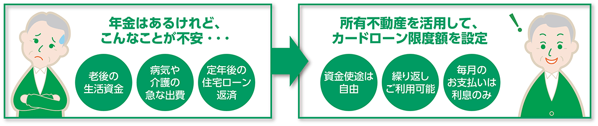 自宅のリフォーム、セカンドハウスの購入といった住まいに関する資金から、豊かなセカンドライフを送るための生活資金や遊興資金、債務のおまとめ資金などにご利用いただけます。