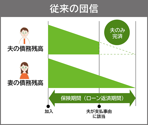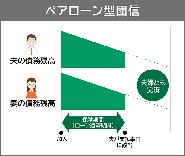 団体信用生命保険の支払もペアとし、二人のローン残高がゼロになります