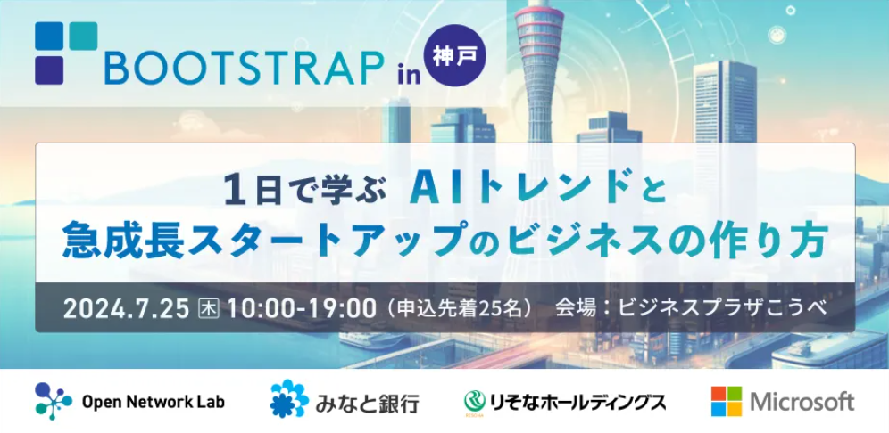 スタートアップイベント「BOOTSTRAP in 神戸」の開催について ~ 1日で学ぶAIトレンドと急成長スタートアップのビジネスの作り方 ~