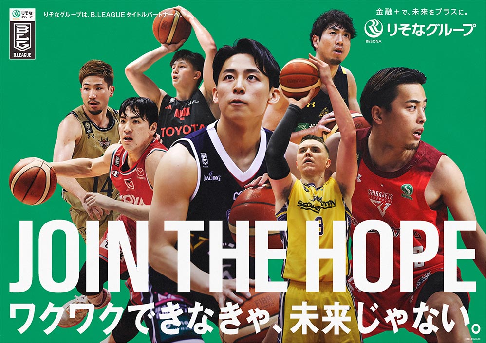 「JOIN THE HOPE」は、りそなグループが描く、ワクワクできる未来に、B.LEAGUEのチカラがプラスされた瞬間に生まれる「熱量」を体現した言葉です。私たちがB.LEAGUEのタイトルパートナーとなって実現させたい、誰もが希望に満ち溢れた世界に、日本中の皆さんを巻き込んでいきたい、参加してもらいたい!JOINしたいという、強い想いが込められています。