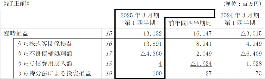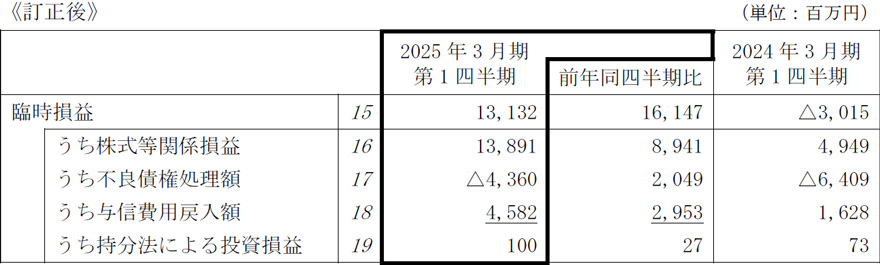 (訂正)「2025年3月期 第1四半期決算短信〔日本基準〕(連結)」補足説明資料の一部訂正について