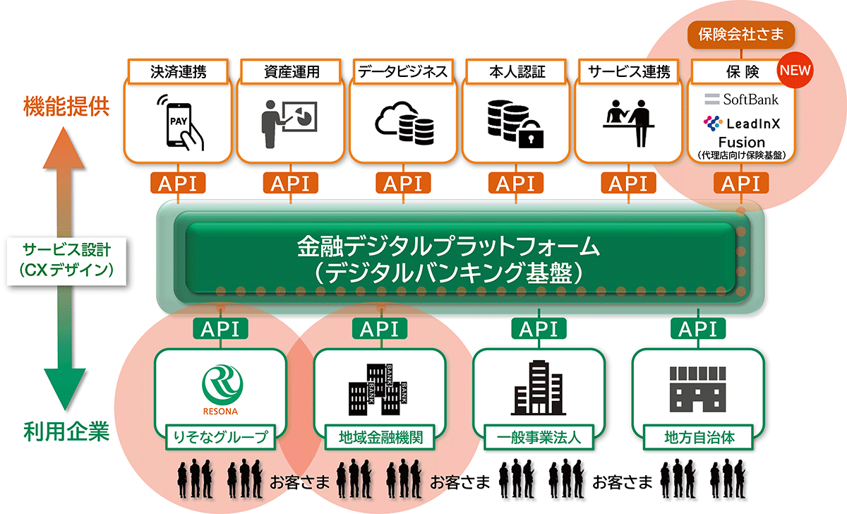 - ※2りそなホールディングスの連結子会社。りそなグループや革新的なテクノロジーを有する企業が持つ優れた機能・サービスと利用企業をAPIで繋ぐ金融デジタルプラットフォームを提供する。