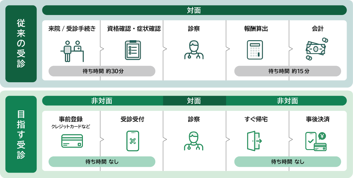 - ※目指す受診は、中長期的に目指す受診体験を表現しております。現時点で提供する機能により、実現できる内容とは異なります。
