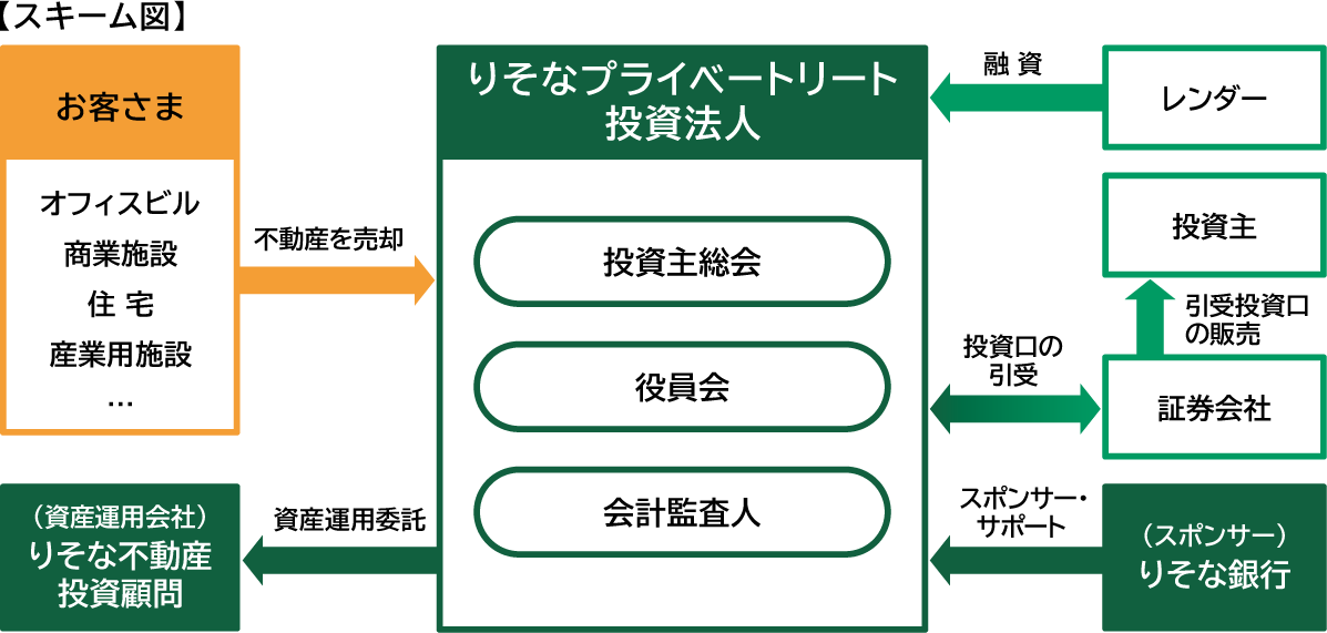 「りそなプライベートリート投資法人」は、りそなグループのリテールのお客さまの資金調達を支援するために大企業だけではなく、中堅・中小企業のお客さまから様々な種類の不動産を取得する方針です。私募REITは運用期間を定めることなく不動産を保有することができるため、お客さまは所有している不動産を本私募REITに売却することでオフバランス化できます。中長期にわたって中堅・中小企業を含む幅広いお客さまの財務改善や資金調達の多様化を実現し、ビジネスチャンスを広げるための新たな選択肢を提供します。