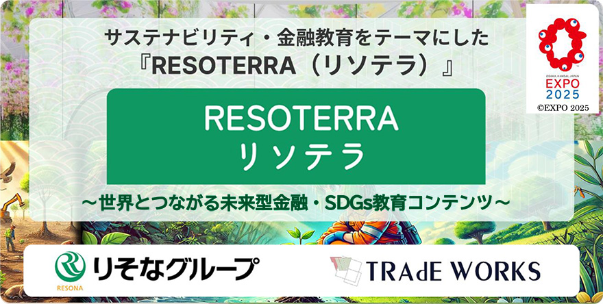 りそなホールディングス(社長 南 昌宏)は、バーチャル空間でのさまざまな体験を通じて多くの学びの機会を提供するとともに2025年日本国際博覧会(大阪・関西万博)をより一層盛り上げるため、大阪・関西万博の開催期間中にオンラインで展開されるメタバース空間「バーチャル万博~空飛ぶ夢洲~」にサステナビリティと金融教育をテーマにしたゲーム『RESOTERRA(リソテラ)※』を4月13日(日)から出展します。