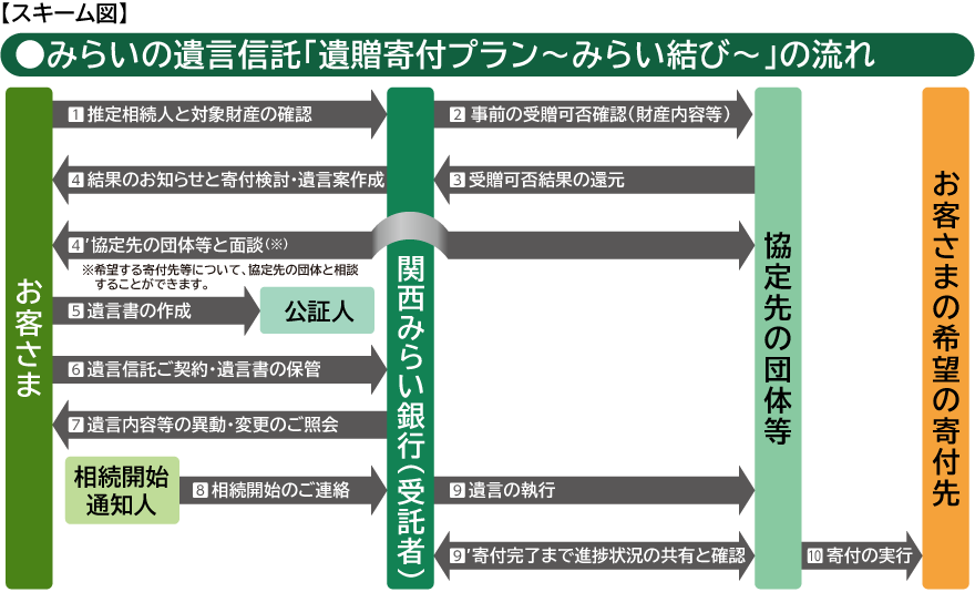 りそなグループの関西みらい銀行(社長 西山 和宏)は、遺言信託を活用した新たな遺贈寄付プラン「みらい結び」の取り扱いを本日開始します。